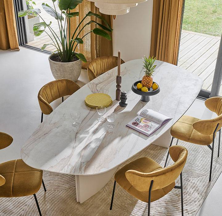 Nos conseillers en magasin vous accompagnent pour créer la salle à manger qui vous ressemble